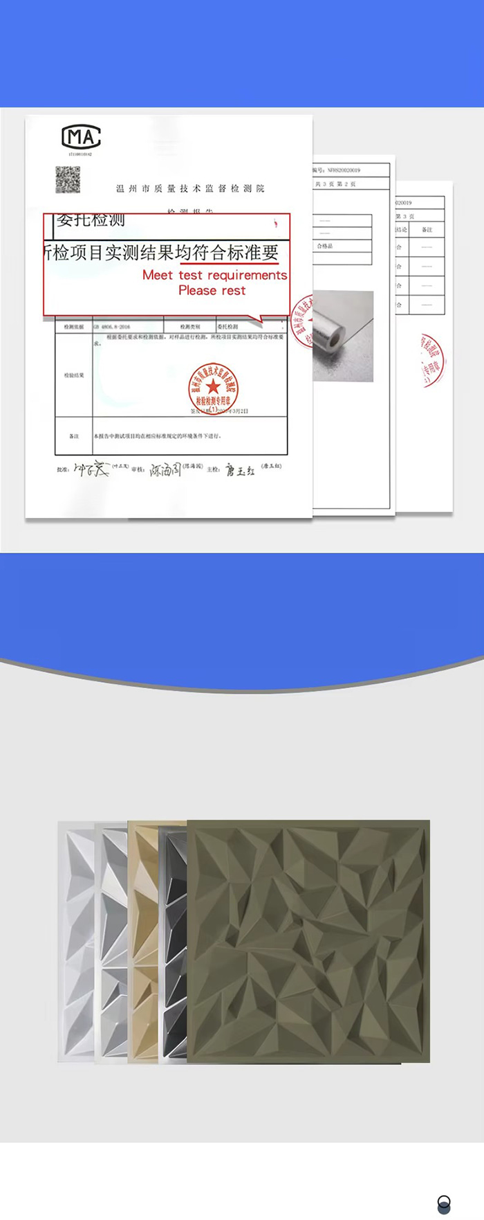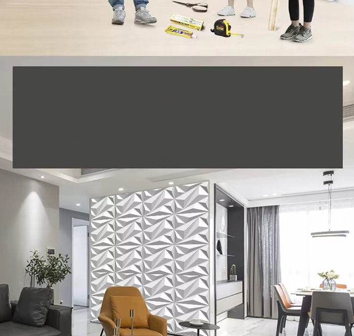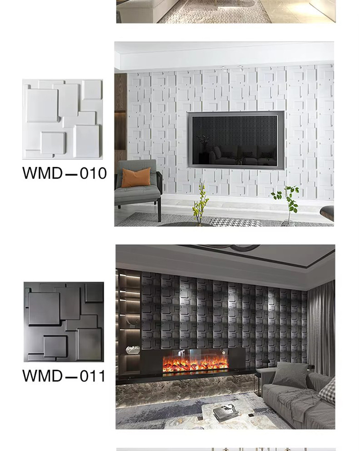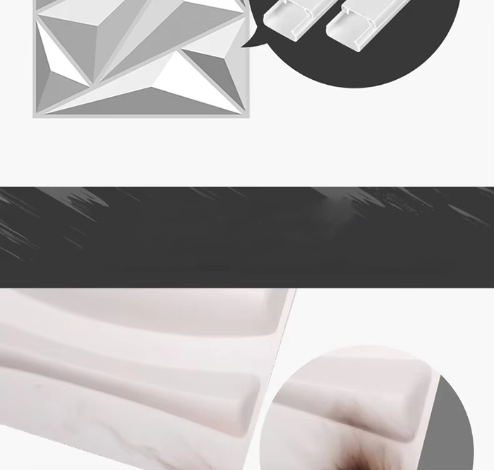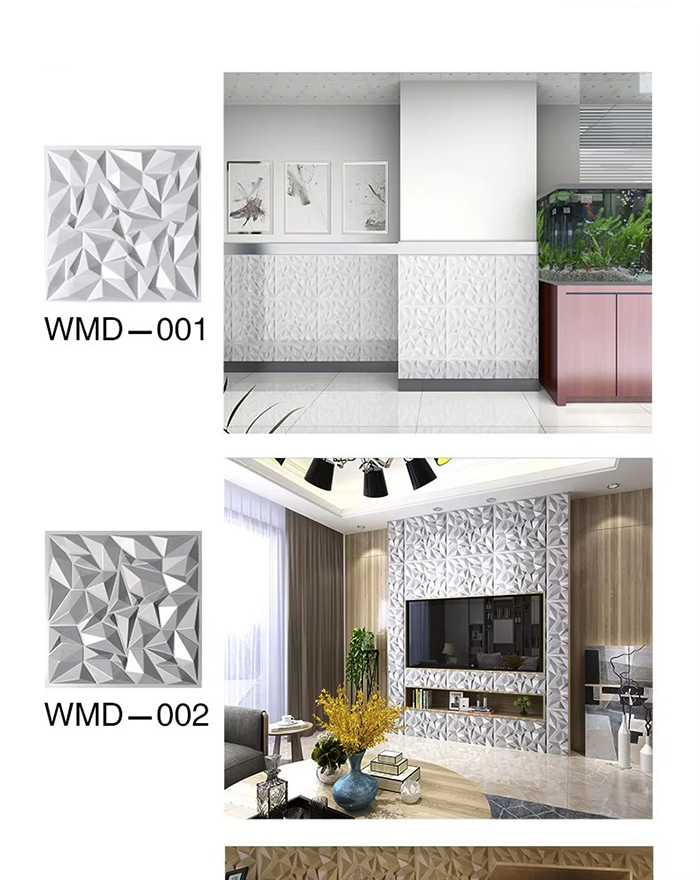 Panel dinding 3D ialah jenis bahan hiasan baharu. Melalui penekanan panas acuan, ukiran dan pengilangan atau percetakan CNC, corak tiga dimensi terbentuk pada permukaan panel. Bahan asasnya termasuk PVC, papan ketumpatan, aloi aluminium, gentian buluh, dll. Mengambil PVC sebagai contoh, bahan komposit molekul tinggi disemperit pada suhu tinggi, dan corak permukaan ditekan oleh acuan keluli ketepatan, dengan ketepatan cekung dan cembung minimum mencapai 0.1mm. Panel dinding 3D mempunyai kesan visual tiga dimensi. Melalui prinsip biasan cahaya dan bayang-bayang, satah 2D diubah menjadi kesan visual 3D dengan deria kedalaman, dan lapisan visual meningkat lebih daripada 3 kali di bawah kawasan yang sama.