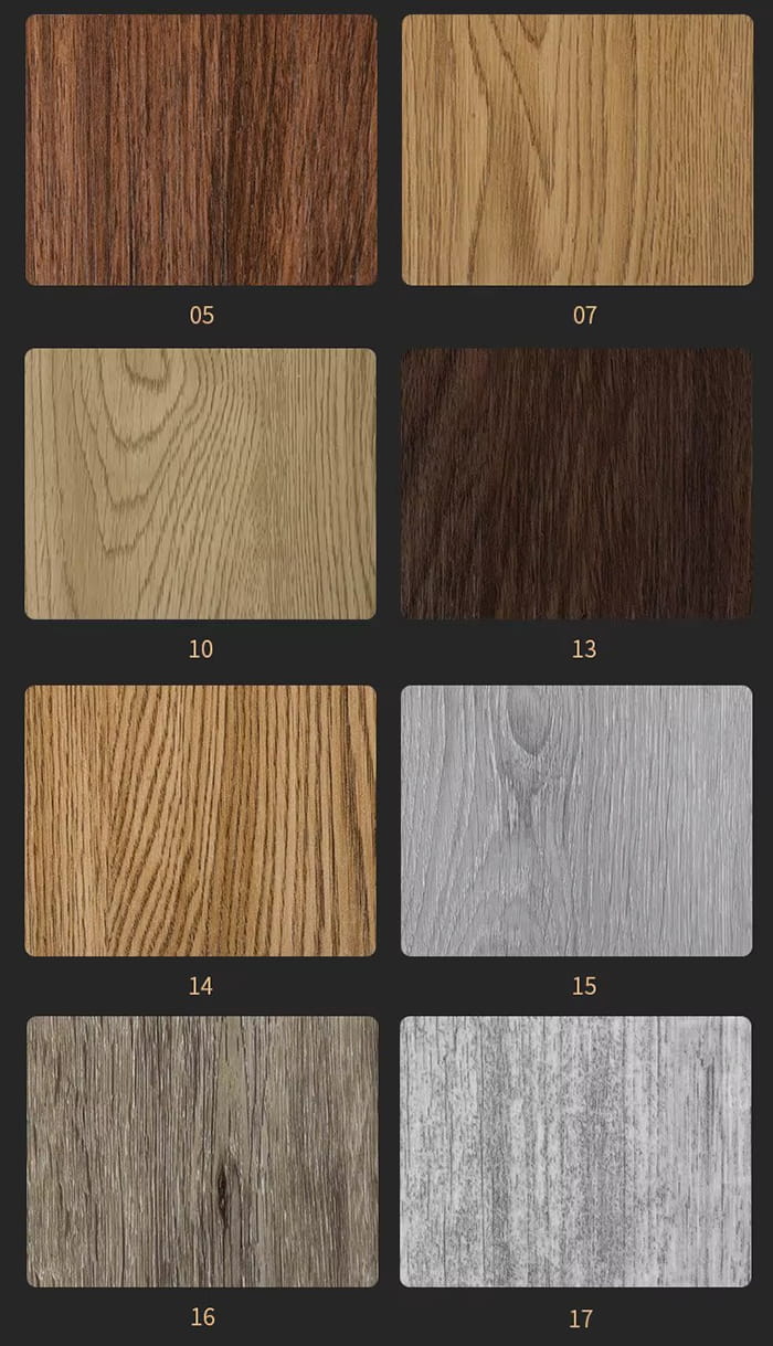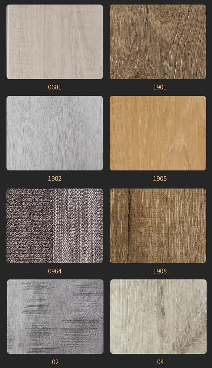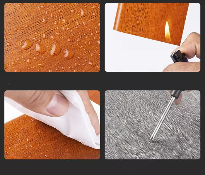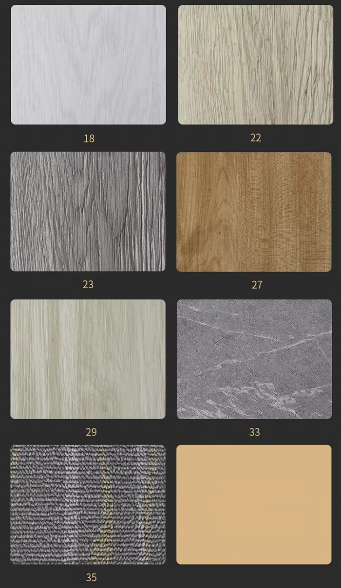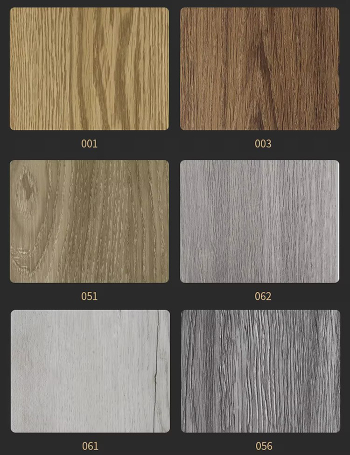 Proses komposit : Filem warna (ketepatan cetakan 1200dpi) dan lapisan tahan haus (0.3mm) ditekan panas dan tekanan pelapis ialah ≥5MPa.