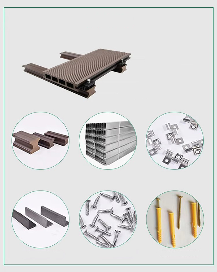 Substrate Mixing Wood fiber (50-60%) PVC resin (30-40%) carbon fiber anti-corrosion layer (5-10%), adding aluminum hydroxide flame retardant to improve to A2 grade.