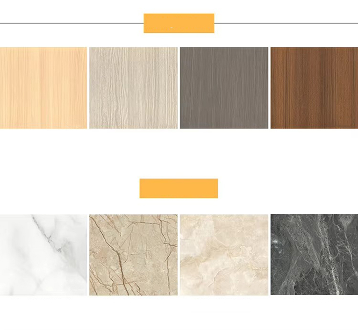 Reka Bentuk Terpelbagai Menyokong lebih daripada 100 corak termasuk bijian kayu, bijian batu, warna pepejal, dsb., dan boleh menyesuaikan corak kecerunan dan artistik.