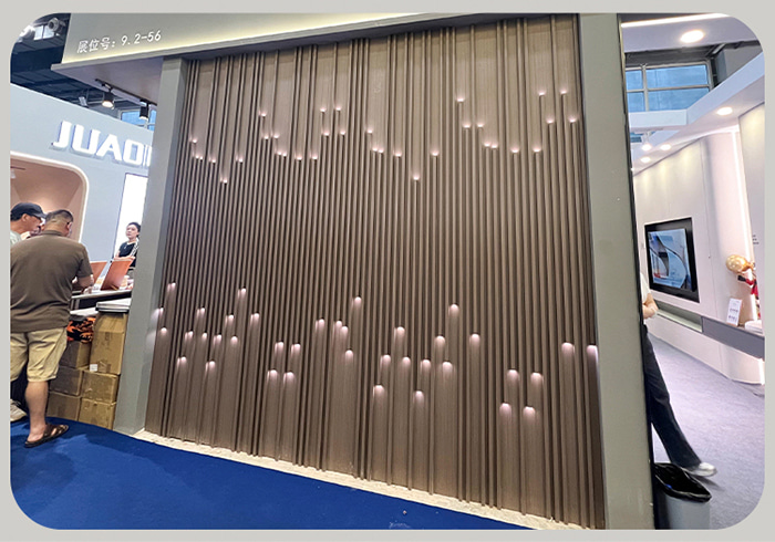 Panel dinding gril bercahaya adalah produk inovatif yang menggabungkan teknologi moden dengan estetika hiasan. Mereka menggunakan bahan mesra alam seperti WPC, dan mencapai kesan bercahaya dengan mengalur atau membenamkan gentian optik pada permukaan panel. Panel dinding jenis ini bukan sahaja mempunyai ciri hiasan yang baik, tetapi juga menyediakan pencahayaan lembut, meningkatkan rasa hierarki dan suasana ruang. Permukaannya boleh dihiasi dengan pelbagai warna ira kayu atau digabungkan dengan bahan lain untuk memenuhi keperluan reka bentuk yang berbeza.