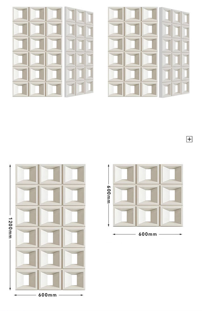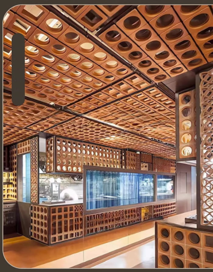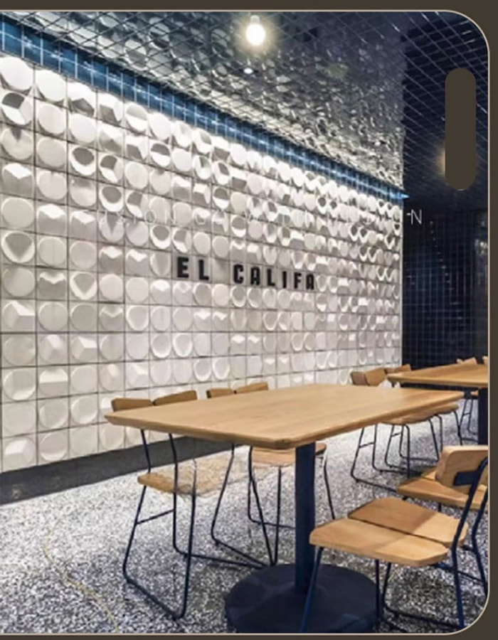 Hiasan Seni BinaDinding/siling dalam : Reka bentuk seperti memberus logam dan pemindahan bijirin kayu meningkatkan tekstur ruang dan sesuai untuk hotel, dewan pameran, vila, dll.