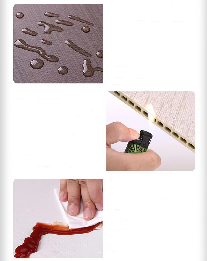 Mudah dipasang: Beratnya ringan dan boleh digergaji, diketam, dipaku dan digerudi. Terdapat pelbagai kaedah pemasangan, menjimatkan masa dan kos. Mudah dibersihkan dan diselenggara: Permukaannya licin, tidak mudah dicemari dengan kotoran, dan ia mudah dibersihkan. Hanya lap dengan kain lembap.