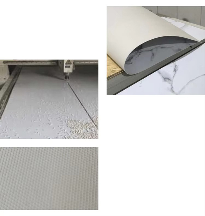 Proses pembuatan: Selepas serbuk resin PVC dicampur dengan bahan tambahan, ia dihasilkan melalui pencampuran berkelajuan tinggi, pencampuran sejuk berkelajuan rendah, penyemperitan skru berkembar kon, pembentukan mati (berbuih penyemperitan bersama), penyejukan dan pembentukan, daya tarikan berbilang penggelek, dan pemotongan produk. Selepas cat UV digunakan, ia diawetkan oleh mesin pengawetan cahaya UV untuk memastikan keseragaman dan kekerasan filem cat.