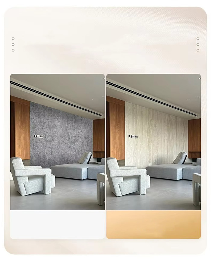 Tekstur yang kaya: boleh mempersembahkan pelbagai tekstur dan tekstur seperti bijirin kayu, batu, tenunan, bata pecah, dsb., dan juga boleh menyesuaikan tekstur diperibadikan mengikut keperluan reka bentuk.