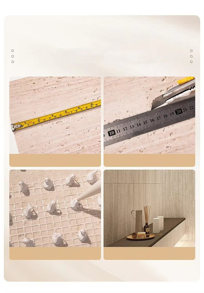 Pengubahsuaian lantai dan dinding lama: Boleh digunakan untuk hiasan lantai dan pengubahsuaian dinding lama, tanpa mengetuk permukaan asas lama, pembinaan mudah, tiada keluaran sampah, tempoh pembinaan pendek, menjimatkan kos pembinaan.
