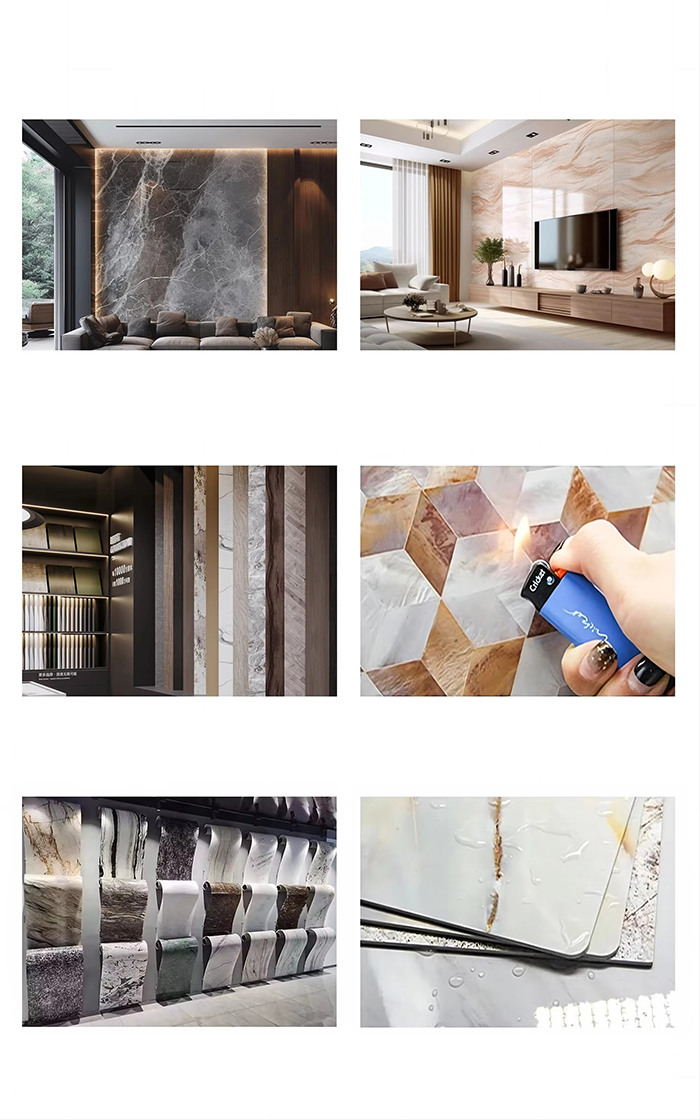 Hiasan kediaman: Ia boleh digunakan untuk hiasan dinding di ruang tamu, bilik tidur, dapur, bilik mandi, balkoni, dll. Ia boleh meniru tekstur bahan semula jadi seperti bijirin kayu dan bijian batu, menambah keindahan semula jadi, dan menyediakan penebat bunyi.